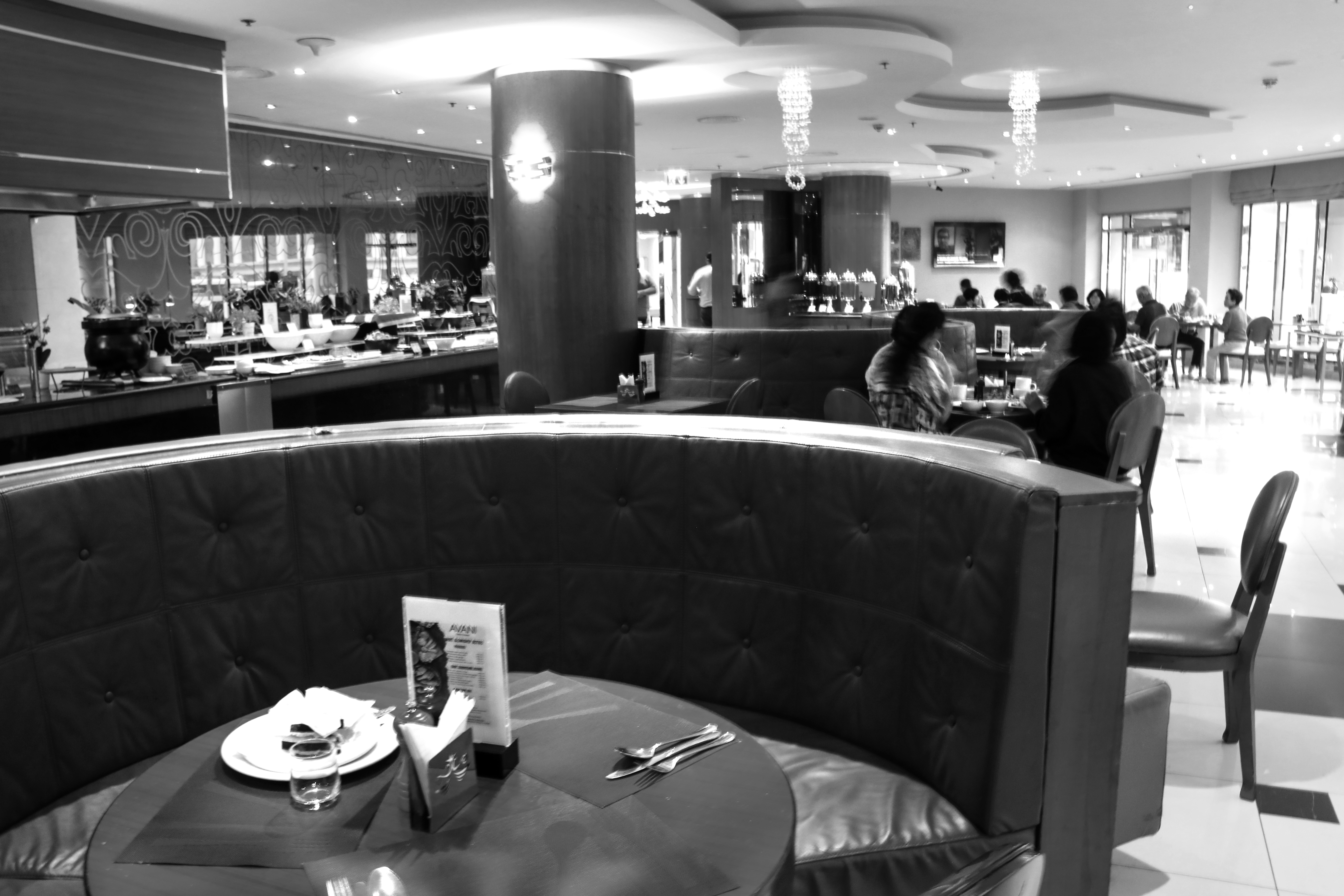 호텔 식당에서,